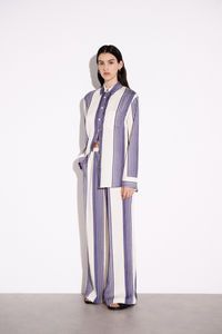 The Albion Tencel Shirt is made in 100% Tencel in our exclusive Storm Stripe. The silhouette is a classic high-rise with wide tailored leg finishing full length. Features include front pleats at waist, elasticated back waistband & concealed button and trouser hook closure.