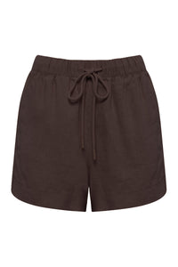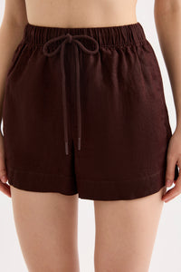 The Blake Linen Short is made from a premium linen which has been washed for a smooth, soft hand feel. The silhouette is relaxed and sits high on the waist with a wide leg opening. Features include an elasticated waistband with cotton drawcord, branded aglets, inseam pockets and splits at hem.
