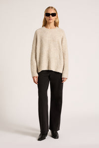 The Elias Knit is made from a recycled, heavyweight yarn which is super soft and has a slight marle effect. The fit is oversized with length finishing above the hips. Features include a crew neckline with ribbed cuff and hem.