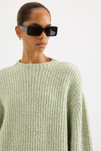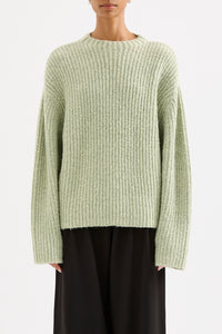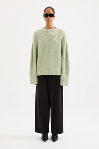 The Parker Knit is made from a soft midweight yarn with subtle fluffy texture. The silhouette is relaxed with a high neck and length finishing at the hips. Features include marled yarn effect and rib finish throughout.
