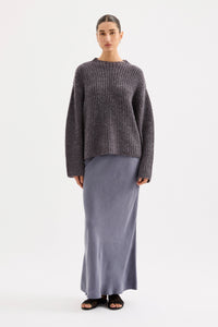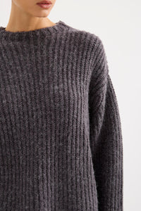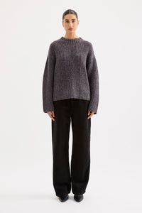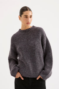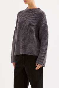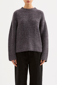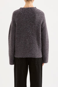The Parker Knit is made from a soft midweight yarn with subtle fluffy texture. The silhouette is relaxed with a high neck and length finishing at the hips. Features include marled yarn effect and rib finish throughout.