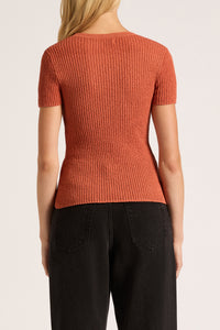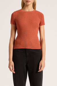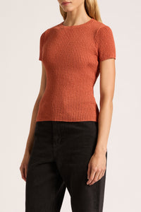 The Perez Knit Top is made in a lightweight textured knit which has a small rib finish. The silhouette is a flattering close fit with length finishing at the hip. Features include a crew neckline, short fitted sleeves and contrast colour on hem