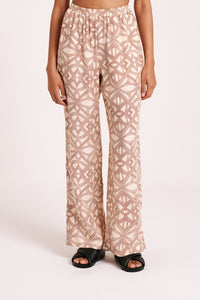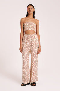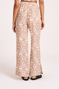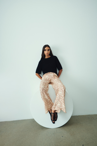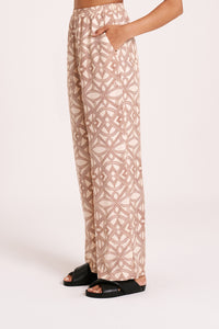 The Shani Cupro Pant is made in our signature cupro fabrication in our exclusive Seville print. The silhouette is a relaxed wide leg, full length pant. Features include an elasticated waistband, side seam pockets and slits at hem.