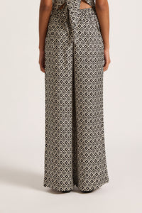 The Simone Pant is made from a lyocell blend fabrication in our exclusive Daiya print. The silhouette is a relaxed wide leg, full length pant. Features include a an elasticated waistband with a drawstring tie and side seam pockets.