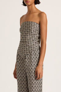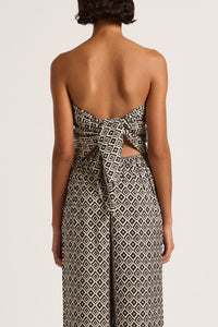 The Simone Scarf is made from a lyocell blend fabrication in our exclusive Daiya print. The scarf is a smooth single layer piece with a neat double turned hem. Designed with versatility, this scarf can be worn as either a top, head scarf, or bag accessory.
