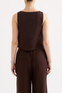 The Thilda Linen Top is made from a premium linen which has been washed for a soft, breathable hand feel. The silhouette is a relaxed A-line shape which finishes above the hips. Features include a scoop neckline and small slits at side seam. This top is fully lined.