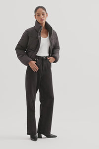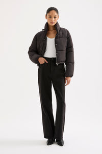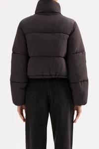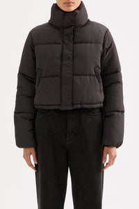 The Topher Puffer Jacket is a fully padded outerwear piece, made from a 100% recycled lightweight breathable nylon. The silhouette is a slim shape with high neck and length just above the hips. Features include an adjustable elasticated drawstring through the hem, elasticated sleeve cuffs, metal zip opening, and side pockets.