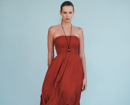 The Alba Cupro Pant is made in our signature cupro fabrication in our exclusive Alba print. The silhouette is a relaxed wide leg, full length pant. Features include an elasticated waistband, side seam pockets and slits at hem.