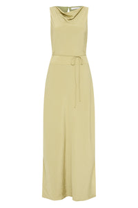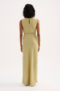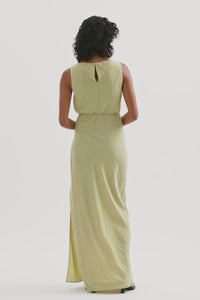 The Alia Maxi Dress is made from a viscose blend fabric which is lightweight and has a soft, textured hand feel. Cut on the bias, this silhouette drapes over the body softly and finishes at the ankles. Features include a soft cowl neckline, tie at waist and side seam slits.