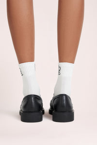 The Allegra Leather Loafer is a slip on style shoe made from smooth upper leather. Features include rounded toe cap, strap with cut out and 3.4cm heel height.