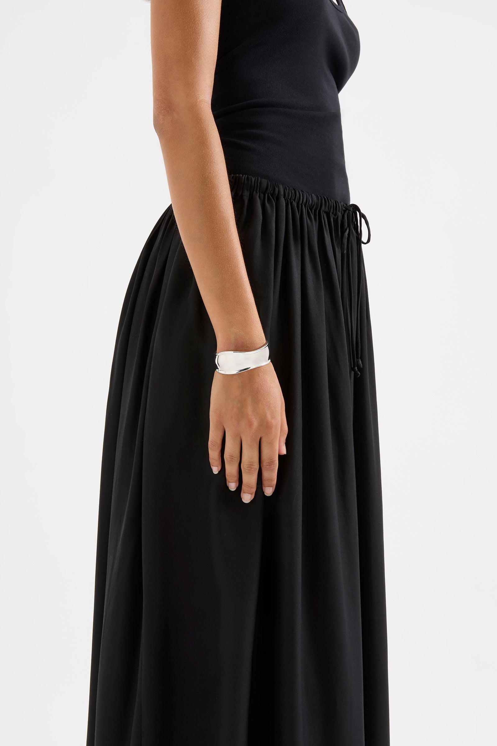 The Aria Cuff is designed with rhodium plating in an asymmetric shape silhouette. This statement cuff features a polished, smooth finish and is nickel free.