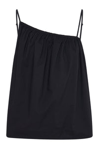 The Aries Top is made from a cotton poplin which has be washed for a smooth, crisp hand feel. The silhouette is relaxed with an asymmetric gathered neck line and length finishing at the hem. Features include a soft elasticated neckline creating subtle gathers and thin adjustable straps.