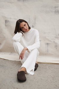 The Arlet Knit Pant is made from 100% Cotton yawn which has a soft hand feel. This relaxed knit pant has a wide ribbed waistband, rolled hems, side splits and seam detail down side leg. Style it with our matching Arlet Knit.