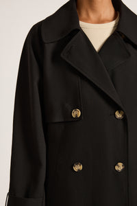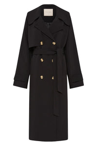 The Aspen Trench Coat is made from a heavyweight fabric with a twill finish. The silhouette is relaxed with wide, full length sleeves and length finishing below the knees. Features include front storm flap, Nude Lucy branded buttons, waist tie and side seam pockets.
