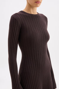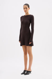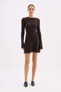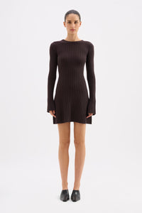 The Astrid Knit Mini Dress is made from a viscose blend yarn that has a soft, warm hand feel. This knitted mini dress has a ribbed construction, flattering A-line silhouette, long sleeves and crew neckline.