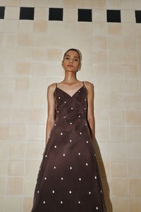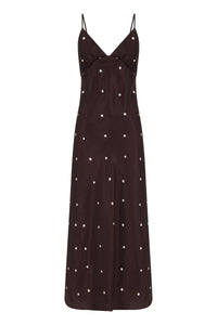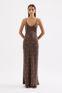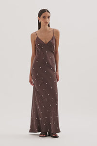 The Athena Cupro Slip Dress is designed in our exclusive Athena print, from a premium cupro fabrication which has a soft, sueded hand feel. This slip dress is ankle length and features a bias cut silhouette, straight back neckline, v neckline, gathering under the bust seams for a flattering shape and adjustable thin straps.
