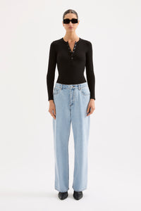 The Binx Long Sleeve Top is made in an organic cotton which has a high stretch and ribbed effect. The silhouette is a flattering close fit with a crew neckline and length finishing at the hips. Features include long fitted sleeves, snap button closure. This can be tucked in or worn over midrise bottoms.