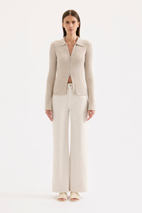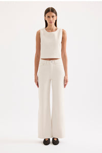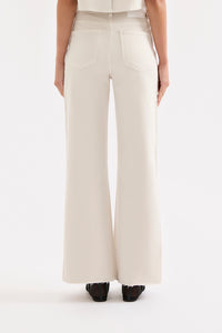 The Cali Stretch Wide Leg Jean is made from a stretch organic cotton denim that has been washed to a stone wash Dune. The silhouette is high rise, fitted to the waist and relaxed from thigh to ankle. Features include raw hem finish branded shank button, rivets & Jacron Back patch. Fits true to size.