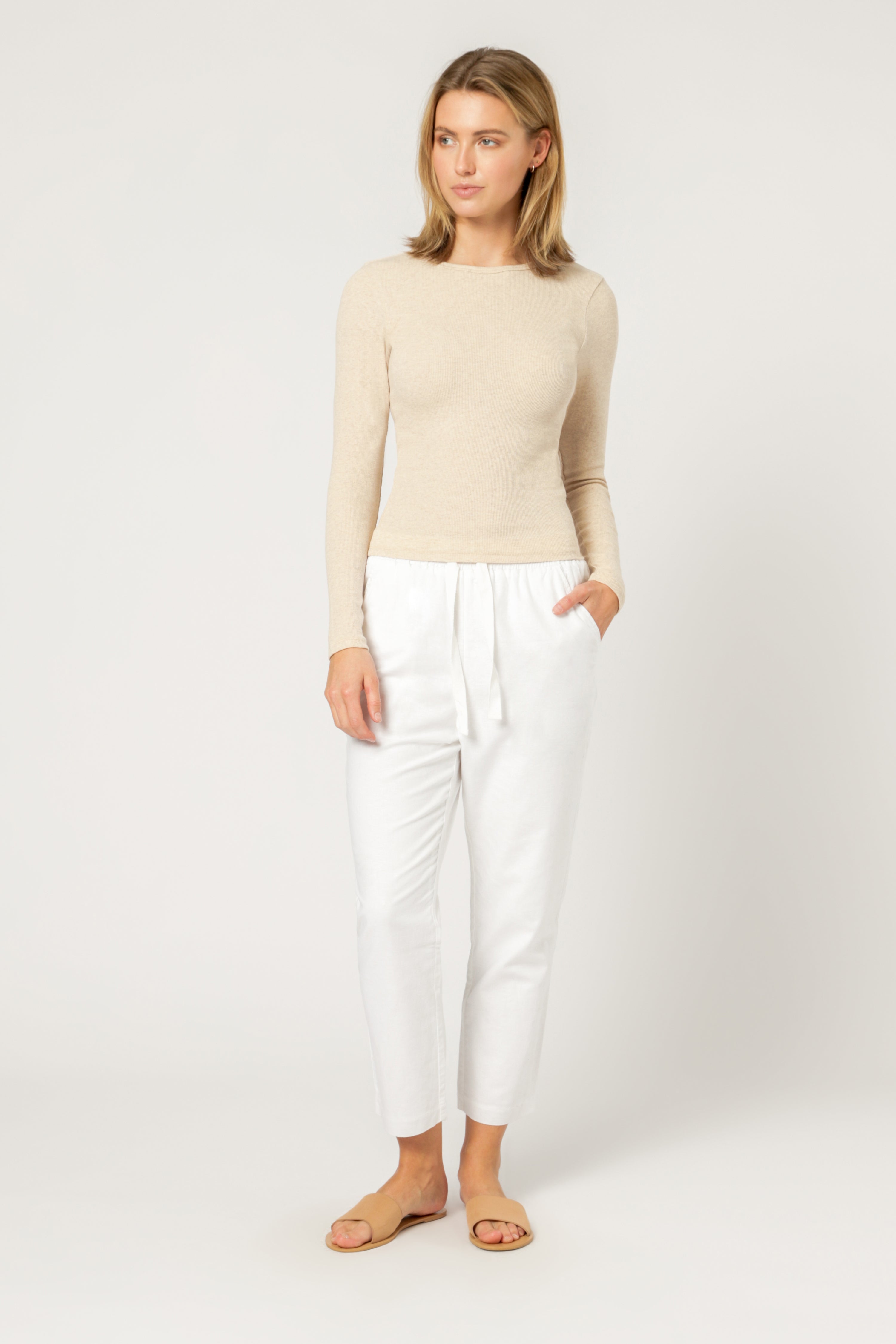 The Charlie Rib Tee by Nude Lucy is a key piece to add to your basics range. It features a crew neck, long fitted sleeves, and a regular length. Crafted from a soft cotton rib fabrication, this tee ensures a flattering close fit. Try this style out with a high rise denim jean