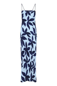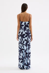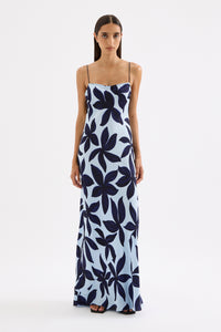 The Corfu Cupro Slip Maxi Dress is made in our signature cupro fabrication in our exclusive Corfu print. Cut on the bias, this silhouette drapes over the body softly and finishes ankle length. Features include a straight neckline with an asymmetrical seam through the body and thin rouleau straps.