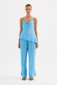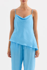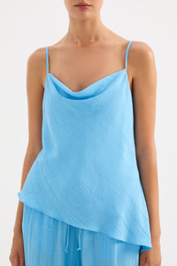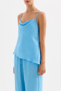 The Demi Cami is made from a viscose blend fabric which is lightweight and has a soft, textured hand feel. Cut on the bias, this silhouette drapes over the body softly and finishes below the hip. Features include a soft cowl neckline, thin adjustable straps and an asymmetrical hem with side seam slits.