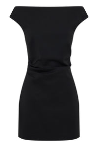 The Ema Mini Dress is crafted from a cotton blend fabrication that has a smooth hand feel and a slight stretch. The silhouette is mini length and features an off shoulder neckline, subtle gathers through waist side seam and an invisible zipper at centre back.
