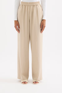 The Eryn Tailored Pant is made from a classic suiting fabrication with a smooth hand feel. The silhouette is relaxed with a wide full length leg. Features include an elasticated waistband, pin stitch down the centre of the legs and side seam pockets.