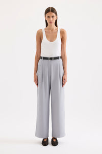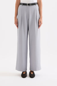 The Everyday Tailored Pant is made from a classic suiting fabrication with a smooth hand feel. The silhouette is a tailored fit with a high rise waist and wide leg. Features include front pleats at waist, internal elastic at back waistband & concealed button and trouser hook closure.