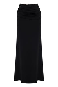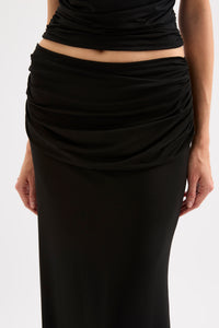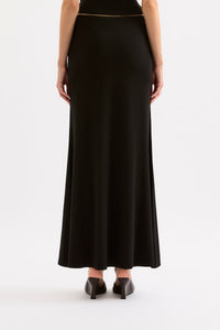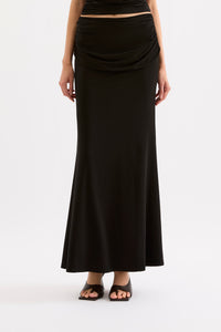 The Hana Maxi Skirt is created out of a premium viscose blend fabrication with a dry handfeel, designed to and move graciously with you. This skirt is designed to sit mid rise and is maxi in length. Features include a softly draped panel across the waist.