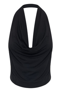 The Hana Top is created out of a premium viscose blend fabrication with a dry handfeel, designed to drape. The silhouette of this top features a deep cowl, halter neck and soft draping. This top finishes above the hips.