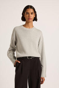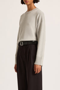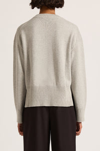 The Jasper Knit is made from a cotton yarn which has a dry hand feel. The silhouette is relaxed with a crew neckline and length finishing at the hips. Features include dropped shoulders, rib around collar, hem and cuff.
