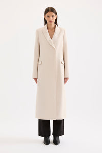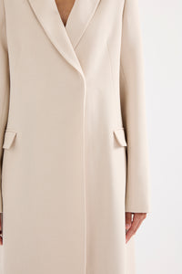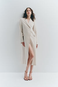 The Jules Longline Blazer is made from a midweight tailoring fabric which has a smooth hand feel and a subtle visual texture. The silhouette is a structured, longline, single breasted shape with classic sloped shoulder, slim fit body & full length sleeve. Features include traditional tailoring detailing throughout, tailored vents at sleeves and back of body and Nude Lucy branded buttons.