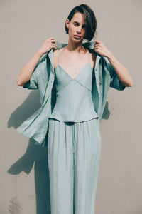 The Lea Cupro Cami is made in our signature cupro fabrication which has a soft, sueded hand feel. The silhouette has fitted bodice cups and relaxed through the body with length finishing at the hips. Features include plunge v-neckline and thin adjustable straps.