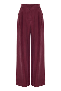 The Lea Cupro Pant is designed with a soft, sueded hand feel fabrication from our signature premium cupro. This cupro pant fits high rise on the waist and is wide leg. Features include front pleats, double belt loop detail, concealed button and trouser hook closure and is elasticated at back waistband.