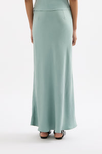 The Lea Cupro Skirt is made in our signature cupro fabrication which has a soft, sueded hand feel. Cut on the bias, this silhouette finishes just above the ankles. Features include encased elasticated waistband with a self cut draw string at centre front.