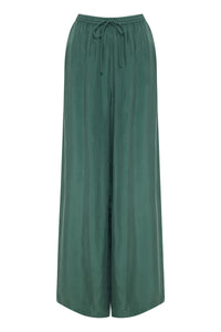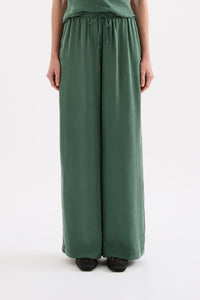 The Leon Cupro Pant is made in our signature premium cupro fabrication which has a soft, sueded hand feel. This pant has a relaxed, wide leg silhouette and features an elastic waistband, drawstring and side seam pockets.