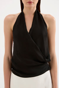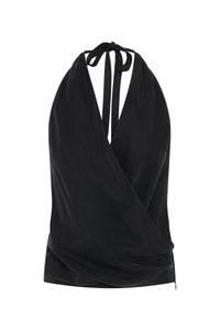 The Leon Cupro Top is made from a premium cupro fabrication with a soft, sueded hand feel. This halter neck top has a cross over draped neckline and low back. It finishes at the hip and has an invisible zipper in side seam for ease.