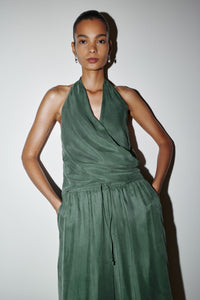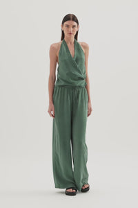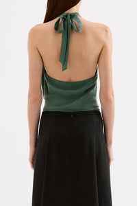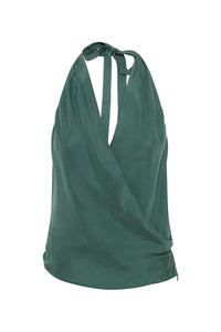 The Leon Cupro Top is made from a premium cupro fabrication with a soft, sueded hand feel. This halter neck top has a cross over draped neckline and low back. It finishes at the hip and has an invisible zipper in side seam for ease.