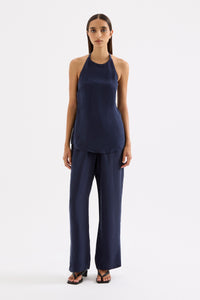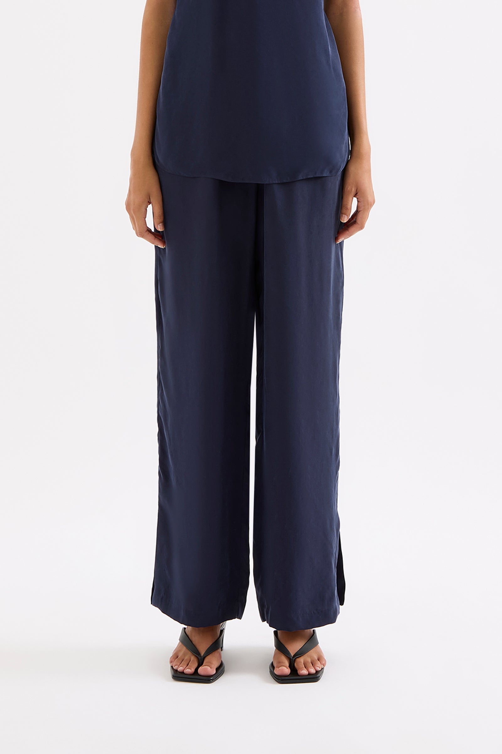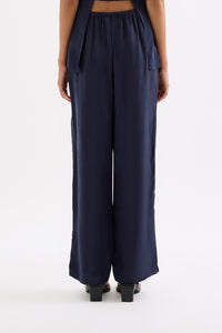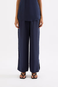 The Linnea Cupro Pant is made in our signature cupro fabrication which has a soft, sueded hand feel. The silhouette is a relaxed wide leg, full length pant. Features include an elasticated waistband, side seam pockets and slits at hem.