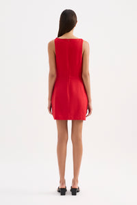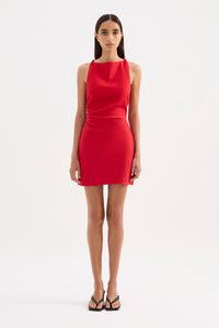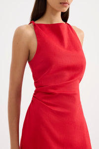 The Lotta Linen Mini Dress is made from a breathable 100% linen that has a soft hand feel. This silhouette is slim fit with an A-line mini skirt. Features wide boat neck with twist detail straps, gathers through waist create a flattering fit and invisible zipper at back. This dress is fully lined.