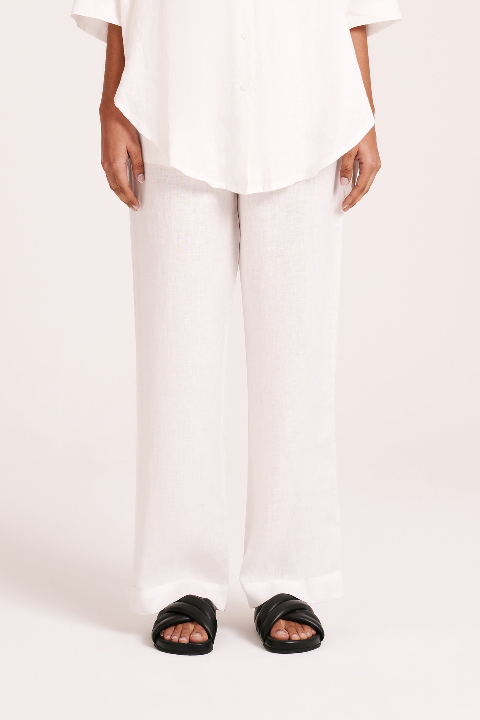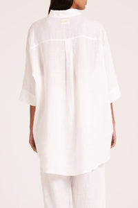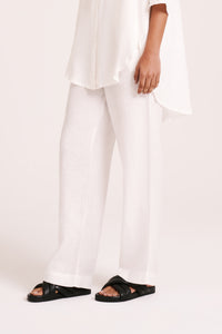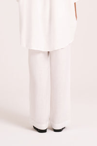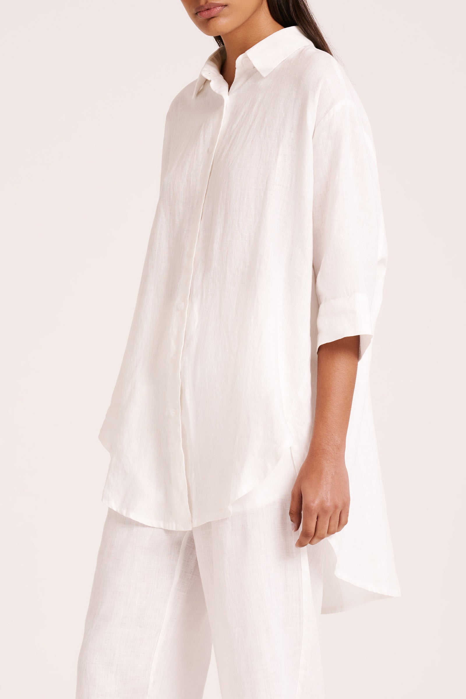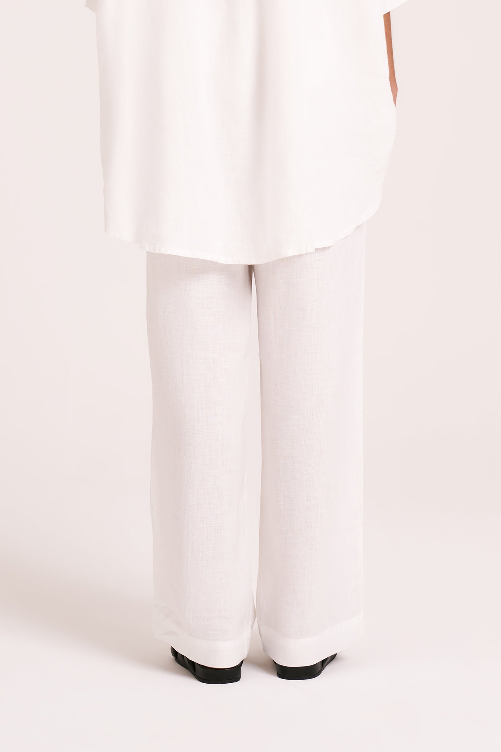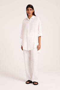 Made in a premium lightweight 100% linen, washed down for a soft and breathable handfeel. The Lounge Linen Longline Shirt is a relaxed, oversized fit with a long billowing hemline and side slits. Features include classic shirt detailing with collared neckline, button front opening, 3/4 sleeves and a Nude Lucy branded label. The Lounge Linen Pant features an elasticated waistband with a button front, side seam pockets and back patch pockets with a Nude Lucy branded label. This full length pant is a relaxed fit. Pair with a Nude Lounge top in coordinating colours.