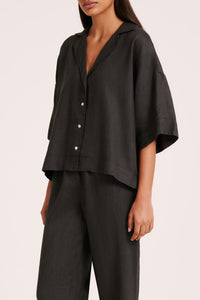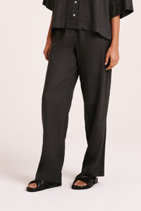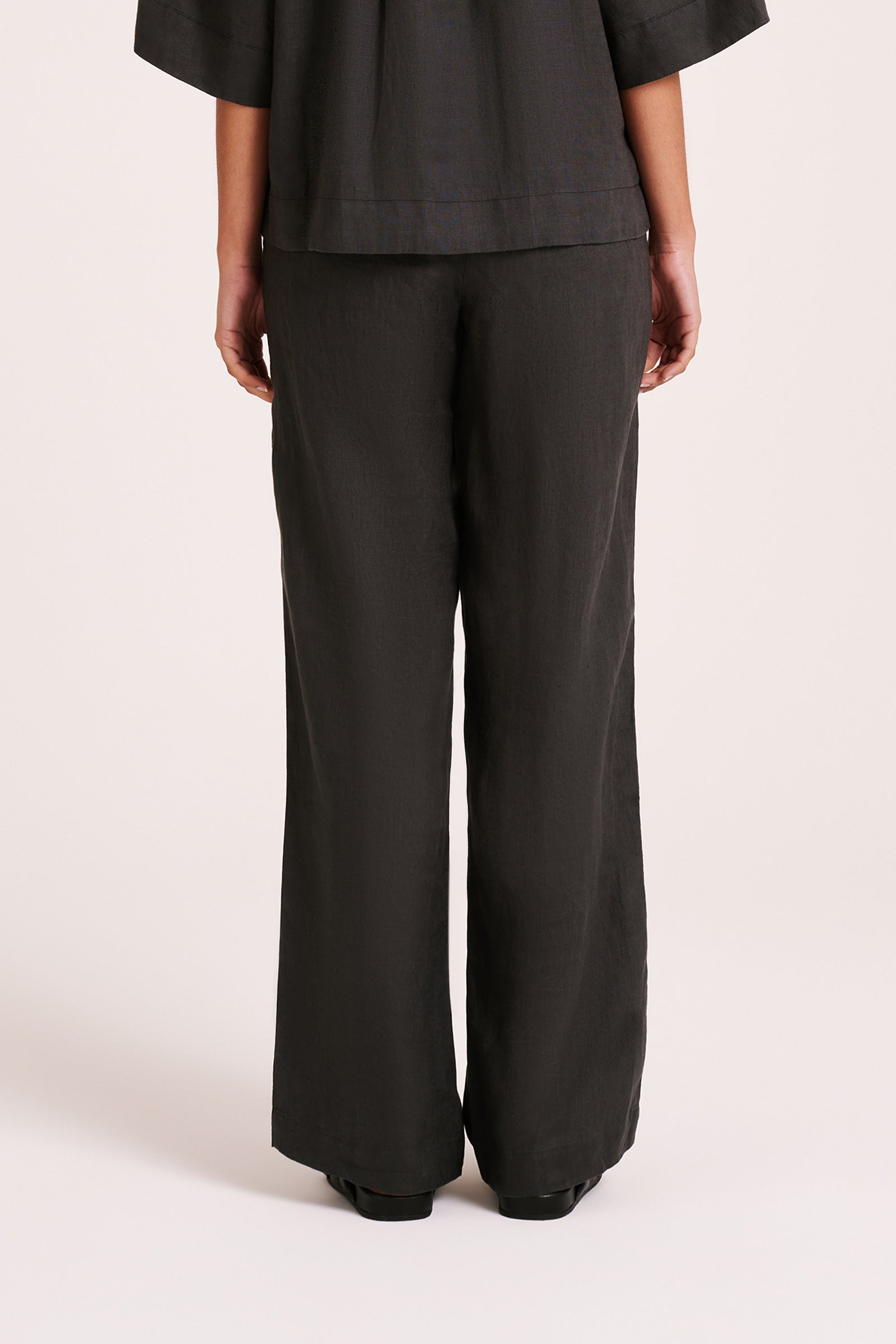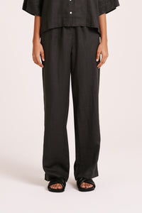 Made in a premium lightweight 100% linen, washed down for a soft and breathable handfeel. The Lounge Linen Shirt is a classic shape, with a clean and casual fit. Features include a wide collared neckline, button front opening and wide elbow length sleeves. This shirt also includes the Nude Lucy branded label. The Lounge Linen Pant features an elasticated waistband with a button front, side seam pockets and back patch pockets with a Nude Lucy branded label. This full length pant is a relaxed fit.