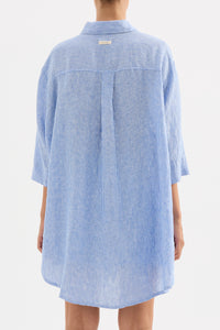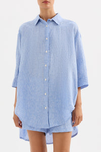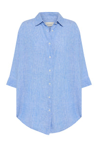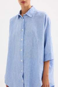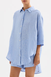The Lounge Linen Longline Shirt is made in a premium 100% organic French linen which has been washed down for a soft and breathable hand feel. The silhouette is relaxed and oversized with a long billowing hemline and side slits. Features include classic shirt detailing with collared neckline, button front opening, 3/4 sleeves and a Nude Lucy branded label. This Longline Shirt can be worn by itself or paired with a Nude Lounge bottom.