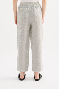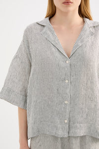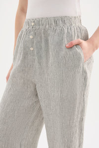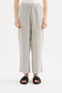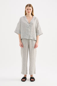 Made in a premium lightweight 100% linen, washed down for a soft and breathable handfeel. The Lounge Linen Shirt is a classic shape, with a clean and casual fit. Features include a wide collared neckline, button front opening and wide elbow length sleeves. This shirt also includes the Nude Lucy branded label. The Lounge Linen Crop Pant features an elasticated waistband with a button front, side seam pockets and back patch pockets with Nude Lucy branded label. This pant is designed to sit above the ankle, with a relaxed wide leg fit.