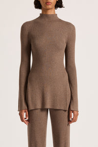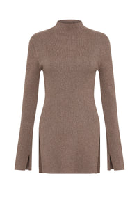 The Malo Knit Tunic is made from a cotton blend yarn that is breathable and has a ribbed finish. The silhouette is fitted to the body with length finishing at hip level. Featured include a mock high neck, long sleeves and slits at side seam.