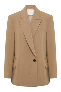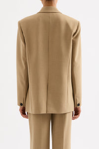 The Mercer Blazer is made from a premium tailoring fabrication which has a slight stretch and a smooth handfeel. The silhouette is a structured double breasted shape with classic sloped shoulder, relaxed fit body & full length sleeve. Features include traditional tailoring detailing throughout, tailored vents at sleeves and back of body, double pocket detail and Nude Lucy branded buttons.