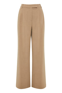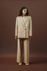 The Mercer Tailored Pant is made from a classic wool blend suiting fabrication with a smooth hand feel. The silhouette is tailored with a high rise and wide leg. Features include front pleats at waist, concealed trouser hook closure and Nude Lucy branded internal waist banding.