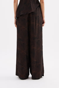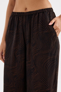 The Onda Cupro Pant is designed in our exclusive Onda print from a premium cupro fabrication which has a soft, sueded hand feel. This printed full length pant has a high-rise fit and wide leg shape. It features an elastic waistband for comfort and side seam pockets.