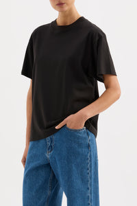 The Organic Boyfriend Tee is made from a heavyweight organic cotton jersey, which has been washed down for a breathable finish and soft hand feel. The silhouette is a larger boxy fit with length finishing just below the hips. Features include a crew neckline and short sleeves.