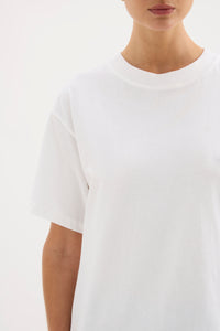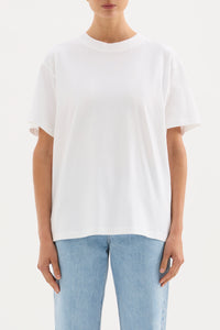 The Organic Boyfriend Tee is made from a heavyweight organic cotton jersey, which has been washed down for a breathable finish and soft hand feel. The silhouette is a larger boxy fit with length finishing just below the hips. Features include a crew neckline and short sleeves.